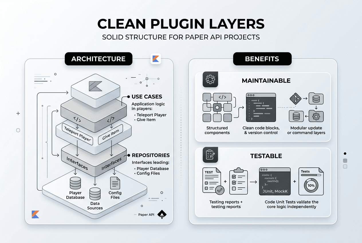 Many developers think shorter Kotlin code equals clean code, but this often causes maintainability problems in Minecraft plugins. Writing concise syntax doesn't automatically create maintainable, bug-free systems. Clean code practices improve code maintainability, reduce bugs, and ease team collaboration when using Paper API, Kotlin, and Maven. This guide explains core clean code principles, practical structuring tips, dependency management, and plugin architecture essentials. You'll learn how to build stable, scalable plugins that support long-term server growth and team productivity.